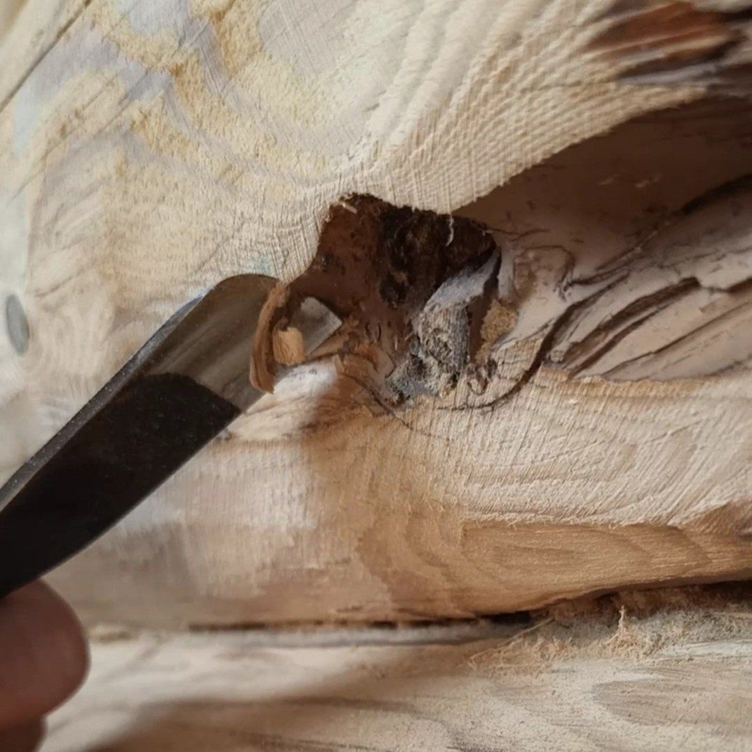Another important step of the restoration process is re-sealing the joints between logs and in the corners. This will make your structure more bug, air, and weather proof. It's a detail-oriented process that, done correctly using high quality, log specific products, will make your space more comfortable.